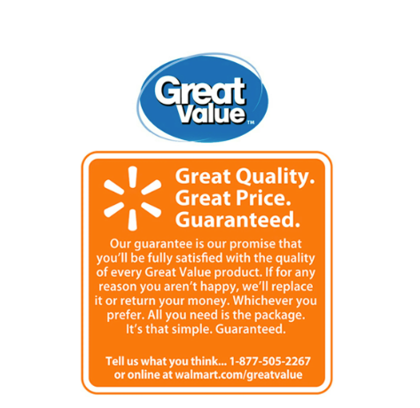 Great Value products provide families with affordable, high quality grocery and household consumable options. With our wide range of product categories spanning grocery and household consumables, we offer you a variety of products for your family's needs. Our products are conveniently available online and in Walmart stores nationwide, allowing you to stock up and save money at the same time.