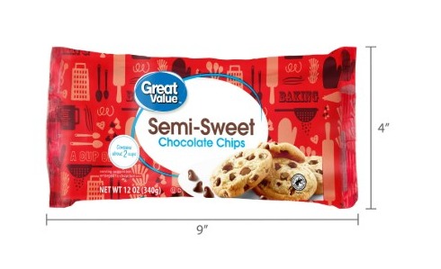 Make life a little more delicious with Great Value Semi-Sweet Chocolate Chips. Treat your family to classic home-baked cookies starring these chocolatey morsels, or get even more creative by using them in tasty cookie dough-stuffed donut holes, cherry and chocolate chip scones, or skillet s' mores. They melt beautifully, so they're perfect for drizzling over fruit and baked goods or for making decadent and rich hot cocoa. You can also try them as an easy addition to savory recipes that use chocolate, like mole enchiladas, chuckwagon chili, or steak with port wine and chocolate sauce. Bring your recipes to new heights with Great Value Semi-Sweet Chocolate Chips.
