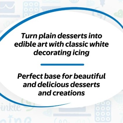 Upgrade your sweet treats with Great Value White Decorating Icing. Our yummy white icing is the perfect base for your delicious and beautiful desserts and culinary creations. Use it as a backdrop to make your other icing colors pop on your cakes, make decorated cupcakes with rainbow sprinkles, or simply enjoy a little dollop straight from the tube for a sweet snack. If you have icing left over, put some on graham crackers for a quick dessert the whole family will love. The culinary possibilities are virtually endless when you choose Great Value White Decorating Icing.