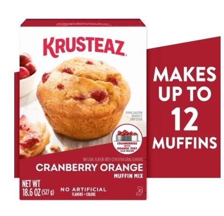 Krusteaz Cranberry Orange Muffin Mix contains no artificial flavors and no artificial colors
