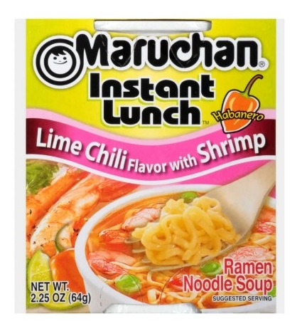 - Maruchan Instant Lunch Lime Chili Flavor with Shrimp Ramen Noodles, 2.25 oz Shelf Stable Cup