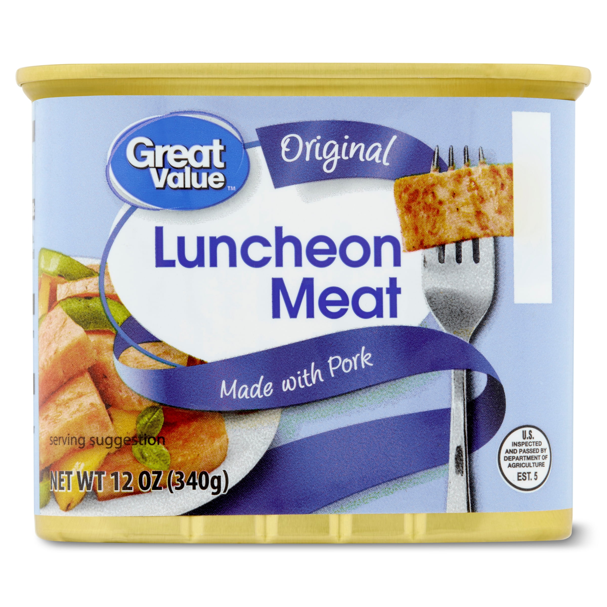This Great Value Original Luncheon Meat is a delicious and savory high-protein addition to a meal. It can be fried, served with eggs, made into sandwiches, and prepared in numerous other tasty ways. This luncheon meat comes sealed in an aluminum can, and at 12 ounces, it fits easily into lunch boxes and stores neatly in cabinet shelves. Already fully cooked and ready to be eaten cold or hot, this versatile lunch meat can also be fried, grilled, broiled, baked, and microwaved to suit any taste. Cook up something delicious with Great Value Original Luncheon Meat.