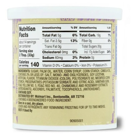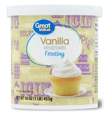 Add that extra touch to your homemade creations with this Great Value Vanilla Frosting. Perfect for special occasions or everyday treats, this smooth and creamy frosting will bring out the best in your baked goods. Enjoy this spread on brownies, cupcakes and cookies, or simply indulge by the spoonful. Top homemade cupcakes with this frosting and sprinkle with chocolate chips for a tasty treat your friends and family are sure to enjoy. It comes in a resealable container, keeping your frosting fresh after every use. Spread some love on your baked goods with Great Value Vanilla Frosting.