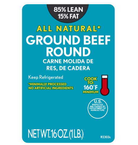 85% Lean / 15% Fat Ground Beef Round, 1 lb Tray, Fresh, All Natural*