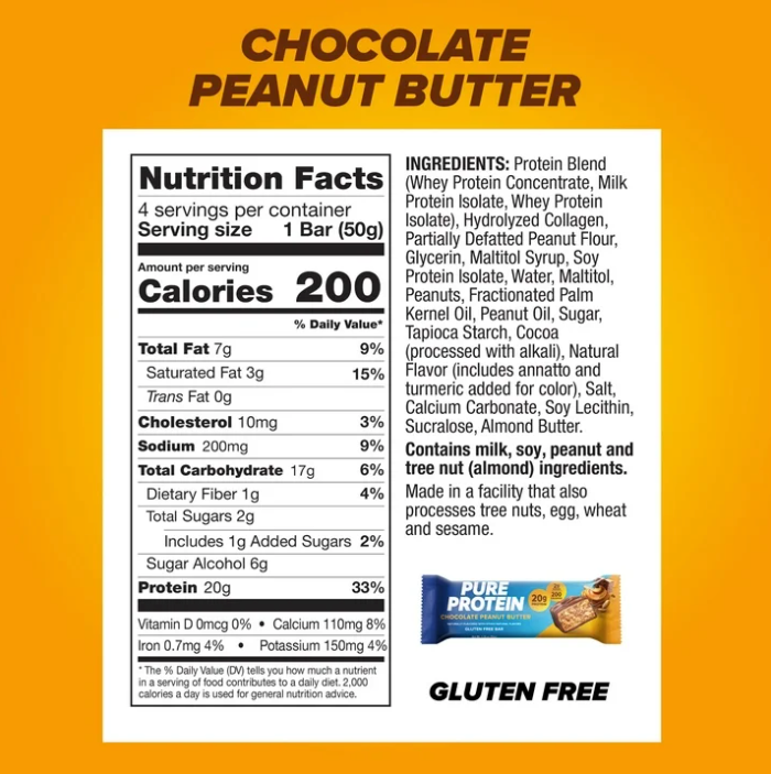 - New Look! Pure Protein Bars, Chocolate Peanut Butter, 20g Protein, 1.76 oz, 4 ct
