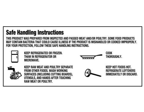 This product was prepared from inspected and passed meat and/or poultry. Some food products may contain bacteria that could cause illness if the product is mishandled or cooked improperly. For your protection, follow these safe handling instructions. Keep refrigerated or frozen. Thaw in refrigerator or microwave. Keep raw meat and poultry separate from other foods. Wash working surfaces (including cutting boards), utensils, and hands after touching raw meat or poultry. Cook thoroughly. Keep hot foods hot. Refrigerate leftovers immediately or discard.