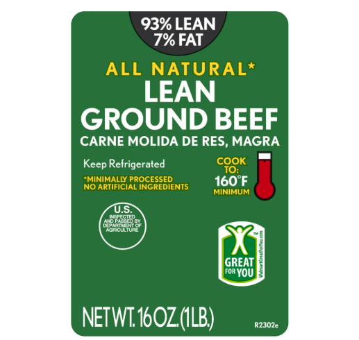 There's nothing like cooking from scratch, especially when you start our fresh with All Natural* 93% Lean/7% Fat Lean Ground Beef Tray. Made with quality USDA inspected beef and no artificial ingredients, our all natural* ground beef is juicy, tender and wet aged for flavor. Our beef is an excellent source of protein, vitamin B6, vitamin B12, zinc, niacin, selenium and a good source of phosphorous, riboflavin and iron. All 9 essential nutrients are naturally found in beef and are a flavorful way to give your body nutrients to help power through the day. Great for sautéing or grilling, our ground beef is a delicious addition to your favorite recipes. Simply cook and serve with asparagus, bowtie pasta and pesto sauce for a hearty weeknight dinner. Includes one All Natural* 93% Lean/7% Fat Lean Ground Beef Tray. *Minimally processed, no artificial ingredients