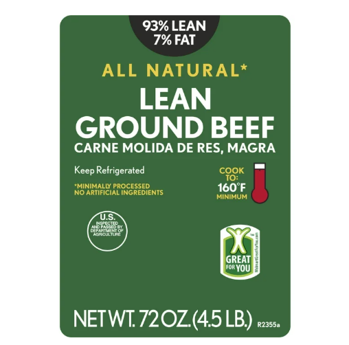 There's nothing like cooking from scratch, especially when you start with our fresh All Natural* 93% Lean/7% Fat Lean Ground Beef. Made with quality USDA inspected beef and no artificial ingredients, our all natural* ground beef is juicy, tender and wet aged for flavor. Our beef is an excellent source of protein, vitamin B6, vitamin B12, zinc, niacin, selenium and a good source of phosphorous, riboflavin and iron. All 9 essential nutrients are naturally found in beef and are a flavorful way to give your body nutrients to help power through the day. Great for sautéing or grilling, our ground beef is a delicious addition to your favorite recipes. Simply cook and serve with asparagus, bow tie pasta and pesto sauce for a hearty weeknight dinner. Includes one package of All Natural* 93% Lean/7% Fat Lean Ground Beef. *Minimally processed, no artificial ingredients
