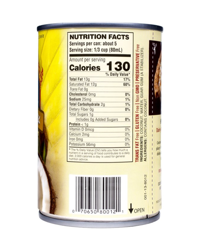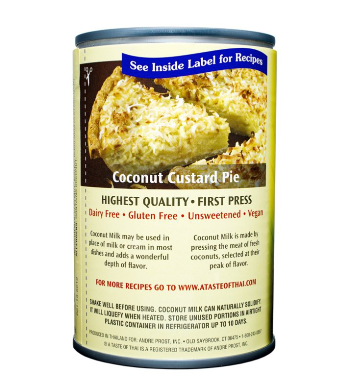A Taste Of Thai® Milk Coconut. This unsweetened coconut milk is made by pressing the meat of fresh coconuts, selected at their peak of flavor. It may be used in place of milk or cream in most dishes and adds a wonderful depth of flavor. Free from dairy, trans fat, gluten, GMOs and preservatives. A vegan product.