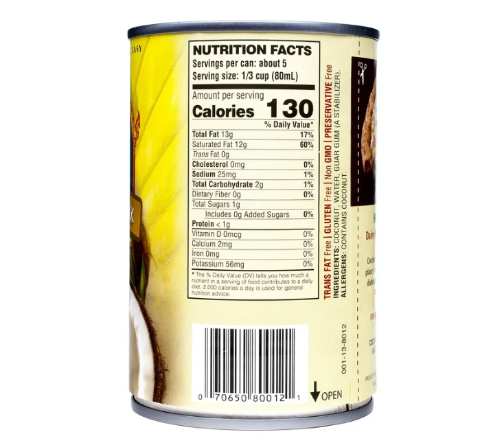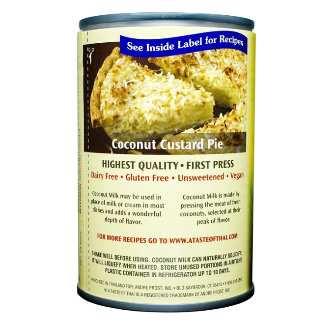 A Taste Of Thai® Milk Coconut. This unsweetened coconut milk is made by pressing the meat of fresh coconuts, selected at their peak of flavor. It may be used in place of milk or cream in most dishes and adds a wonderful depth of flavor. Free from dairy, trans fat, gluten, GMOs and preservatives. A vegan product.