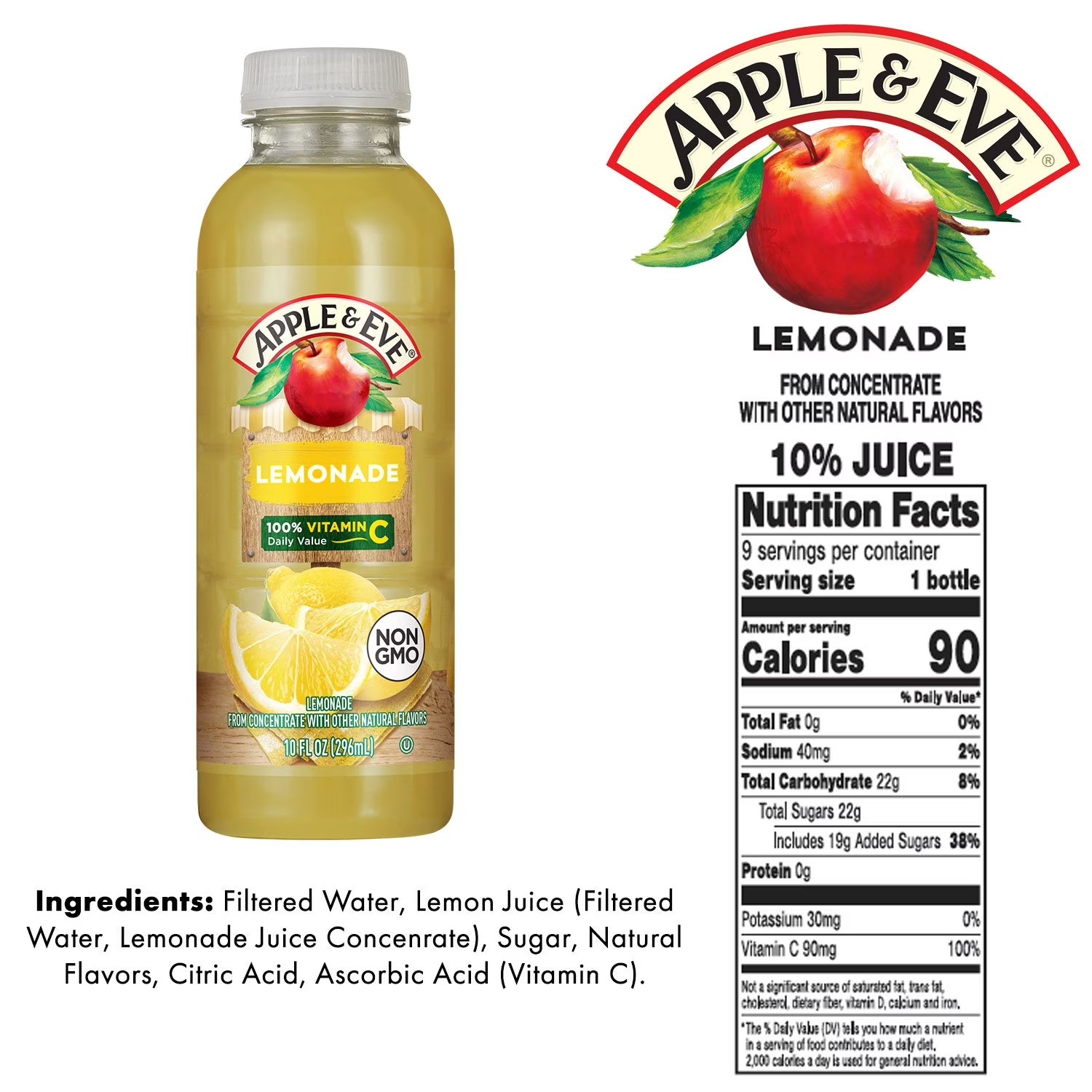 Lemonade Ingredients: Filtered Water, Lemon Juice (Filtered Water, Lemon Juice Concentrate), Sugar, Natural Flavors, Citric Acid, Ascorbic Acid (Vitamin C).
