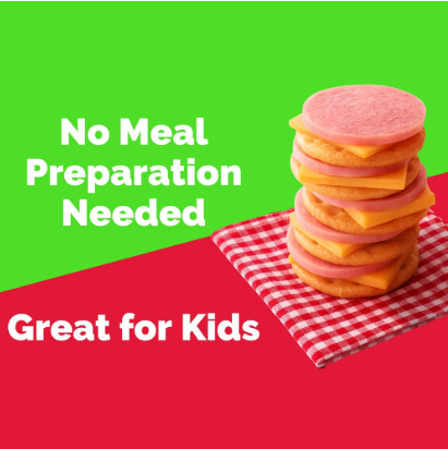 Ready to eat, quick lunch snacks for kids includes chicken, cheese and crackers with a Crunch Bar