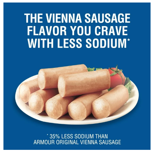 Includes one 4.6-ounce can of Armour Star Vienna Sausage, Reduced Sodium