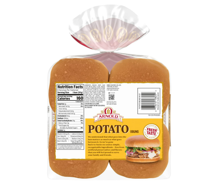 - Contains 8 pre-sliced, slightly sweet Arnold Country Potato Buns