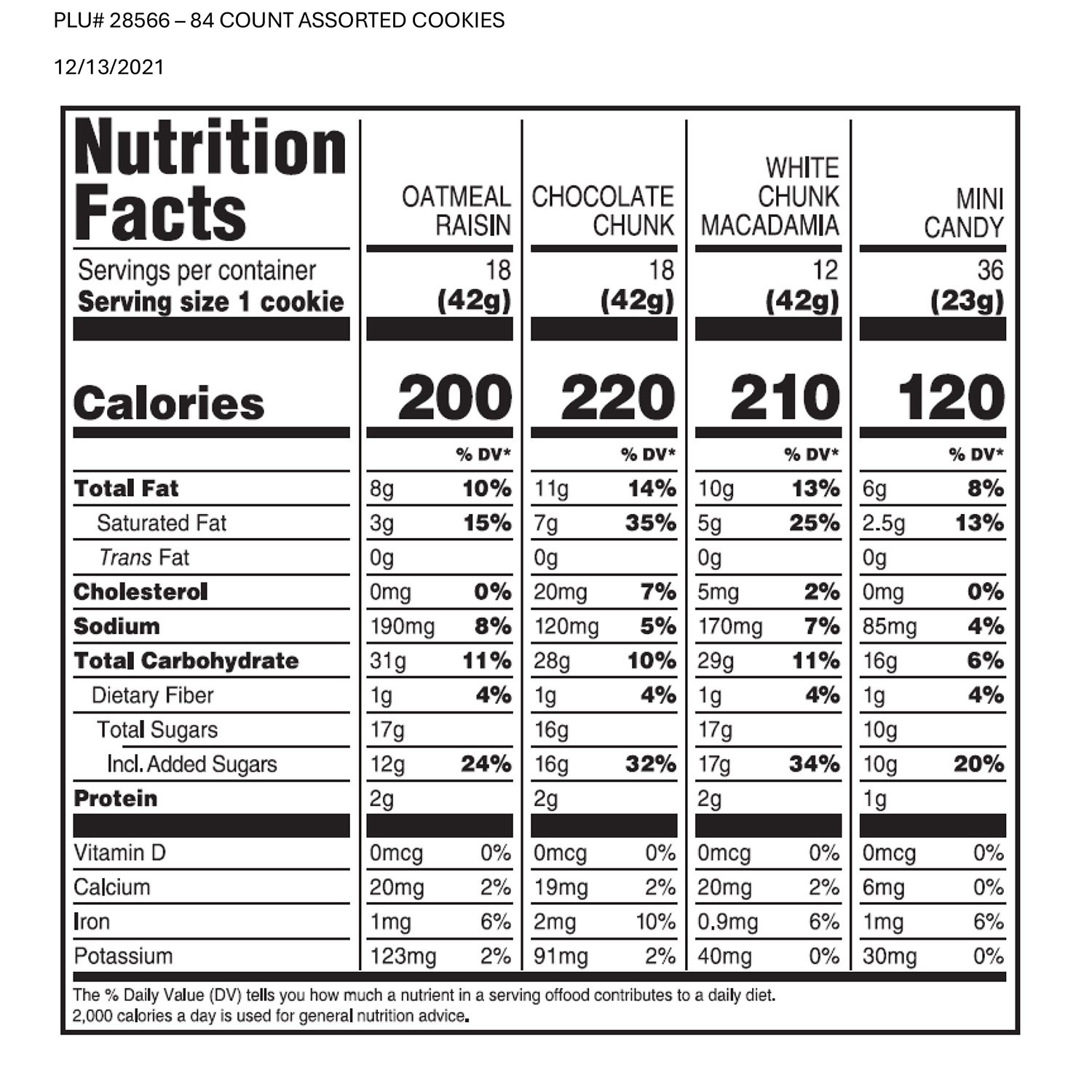 - Includes 18 x Oatmeal Raisin, 18 x Chocolate Chunk, 36 x Mini Candy and 12 x White Chunk Macadamia
