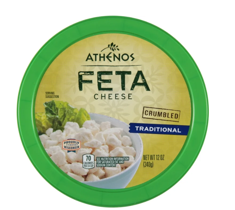 "Athenos Traditional Crumbled Feta Cheese is made simply, with time, care, and respect for the ingredients. Crafted using traditional methods, this feta delivers a rich, tangy, and creamy flavor that elevates everyday meals. Each crumbly bite reflects the heritage of Mediterranean cheese-making, offering authentic taste and texture in every serving. Versatile and delicious, this feta cheese is perfect for a wide variety of dishes. Add it to a fresh Greek salad, sprinkle it over grain bowls, or fold it into spanikopita for a classic twist. Its creamy crumble also works beautifully in spinach and feta dips, omelets, or warm pastas. For a simple and satisfying snack, try it on avocado toast or blend it into a whipped feta spread for dipping and topping. Beyond traditional uses, Athenos Feta adds a bold touch to creative recipes—stuffed chicken, flatbreads, roasted veggies, and more. It pairs especially well with bright, fresh ingredients like tomatoes, cucumbers, olives, and herbs. Packaged in a convenient 6-ounce tub, this crumbled feta is easy to open and reseal, helping to keep flavor locked in between uses. Whether you're preparing a quick lunch or an elegant dinner, Athenos Traditional Feta adds the savory richness and satisfying texture that turns good meals into great ones. Elevate your cooking with Athenos—where simple ingredients meet traditional care for bold, authentic flavor."