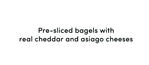 - Pre-sliced bagels made with real cheddar and asiago cheeses