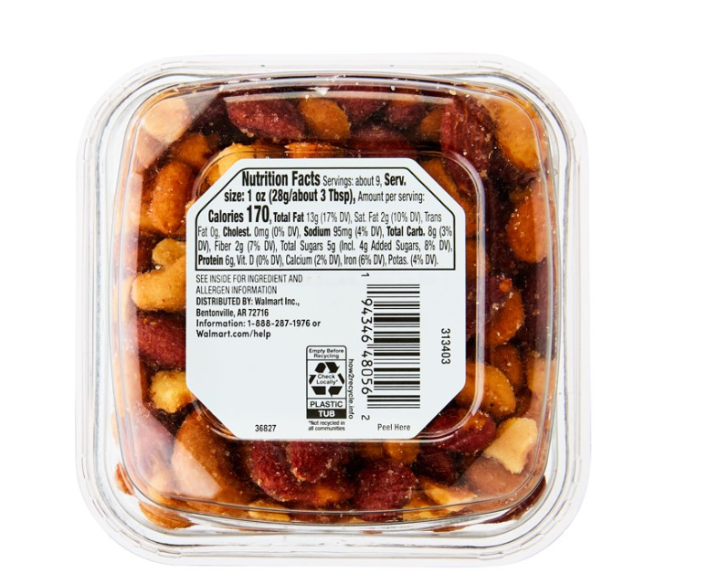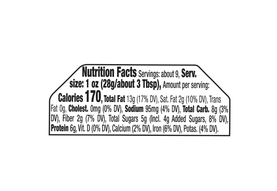 CASHEWS, ALMONDS, PEANUTS, SUGAR, VEGETABLE OIL (PEANUT OIL, COTTONSEED OIL, SOYBEAN OIL AND/OR SUNFLOWER OIL), HONEY, SALT, CONTAINS LESS THAN 1% OF MODIFIED POTATO STARCH, MALTODEXTRIN, XANTHAN GUM, SPICE EXTRACTIVE.