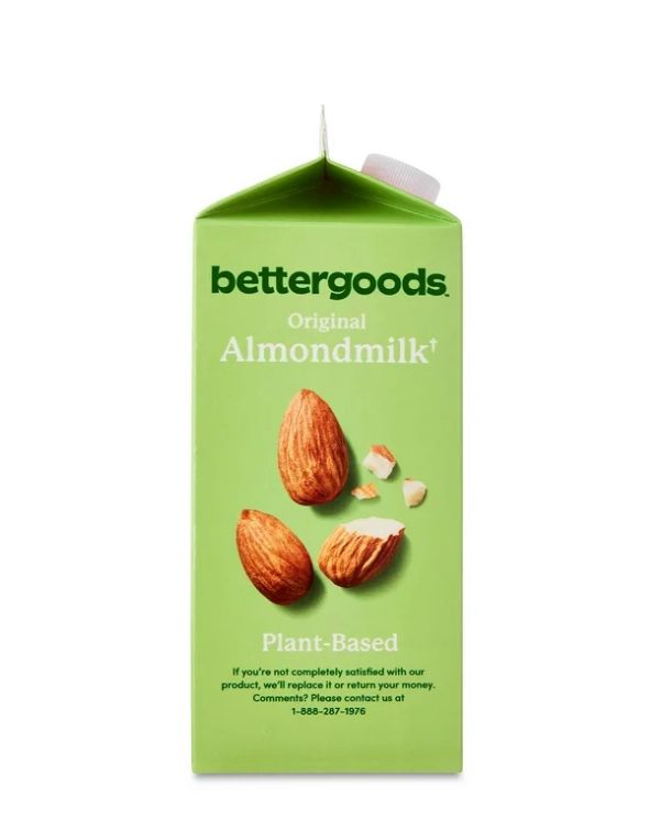 Say hello to the world of bettergoods with our bettergoods Plant-Based Original Almond milk. Each creamy sip is filled with the subtly sweet and nutty flavor of almond, making it a true treat for your palate. Here's the best part -- it's plant-based, a good source of vitamins D and A, and rich in calcium, making it a guilt-free pleasure. Whether you're savoring your morning coffee, enjoying a relaxing afternoon tea, or whipping up a culinary masterpiece, this almond milk adds a smooth creaminess that's both nourishing and delicious. Go ahead, pour a glass, and experience the comforting charm of the countryside with the bettergoods Plant-Based Original Almond milk!