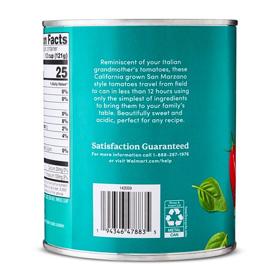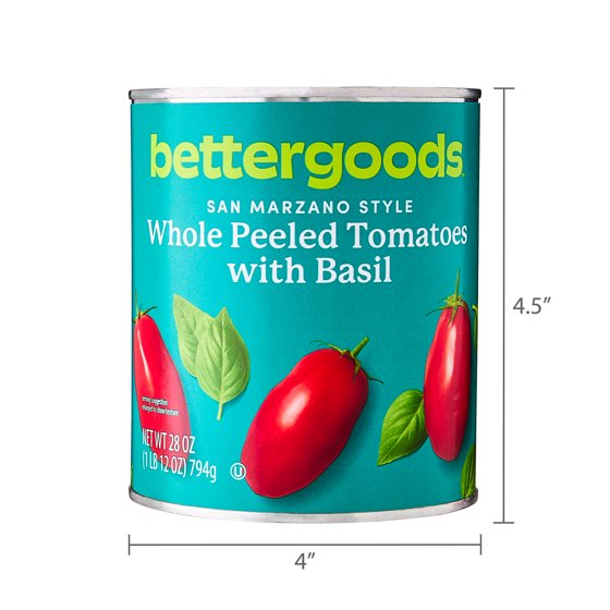 bettergoods San Marzano Style Whole Peeled Tomatoes with Basil, 28 oz