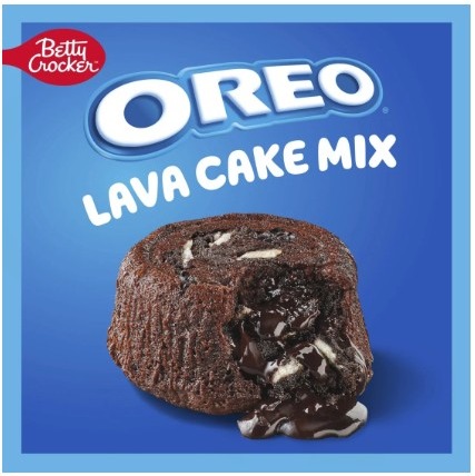 BETTY CROCKER & OREO: Betty Crocker Chocolate Lava Cake Mix with real OREO Cookie Pieces you can sprinkle into the batter before baking