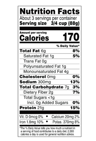- Low in saturated fat with 6g of total fat per serving and no cholesterol with no GMOs or added soy