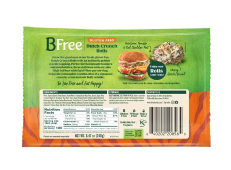 BFree Foods, Gluten Free, Sandwich Rolls, 3 Pack, 5.8oz are produced with a rice flour topping providing a golden crackle for extra texture and a unique flavor. Elevating your next sandwich, these rolls have added health benefits as they are fortified with vitamins B, D and calcium. There is nothing else like these rolls in the gluten free set! These rolls are gluten free, wheat free, dairy free, shellfish free, vegan friendly and Kosher. Toast these shelf stable rolls, add you favorite sandwich toppings and enjoy!