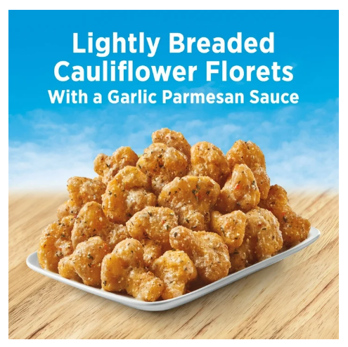 Breaded, frozen cauliflower florets come with garlic parmesan sauce and offer a delicious way to enjoy frozen vegetables