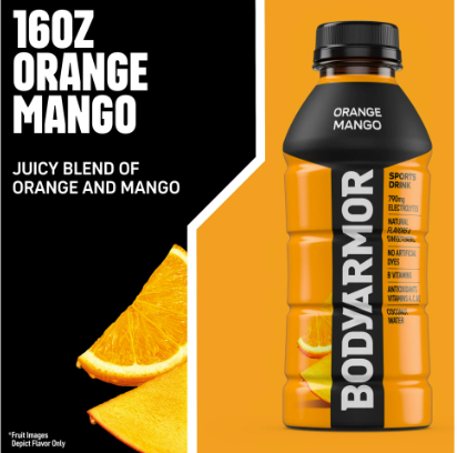 - 16 fl oz bottle of BODYARMOR Sports Drink Orange Mango - hydration's MVP