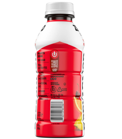 Filtered Water, Citric Acid, Electrolyte Blend (Dipotassium Phosphate, Magnesium Oxide, Zinc Oxide), Vegetable Juice (Color), Steviol Glycosides (Stevia Sweetener), Natural Fruit Punch Flavor with Other Natural Flavors, Vitamins (Ascorbic Acid [Vitamin C], Calcium D-Pantothenate [Vitamin B5], Niacinamide [Vitamin B3], Alpha-Tocopheryl Acetate [Vitamin E], Pyridoxine Hydrochloride [Vitamin B6], Vitamin A Palmitate [Vitamin A], Folic Acid [Vitamin B9], Cyanocobalamin [Vitamin B12]).