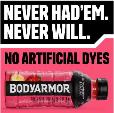 Ditch the sugar - BODYARMOR Zero Sugar is made with no artificial sweeteners, flavors, colors, or dyes