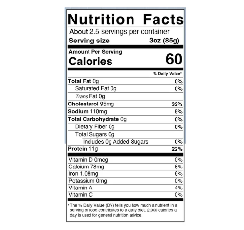 Low Calorie: 60 calories per 3 oz. (85 g) serving