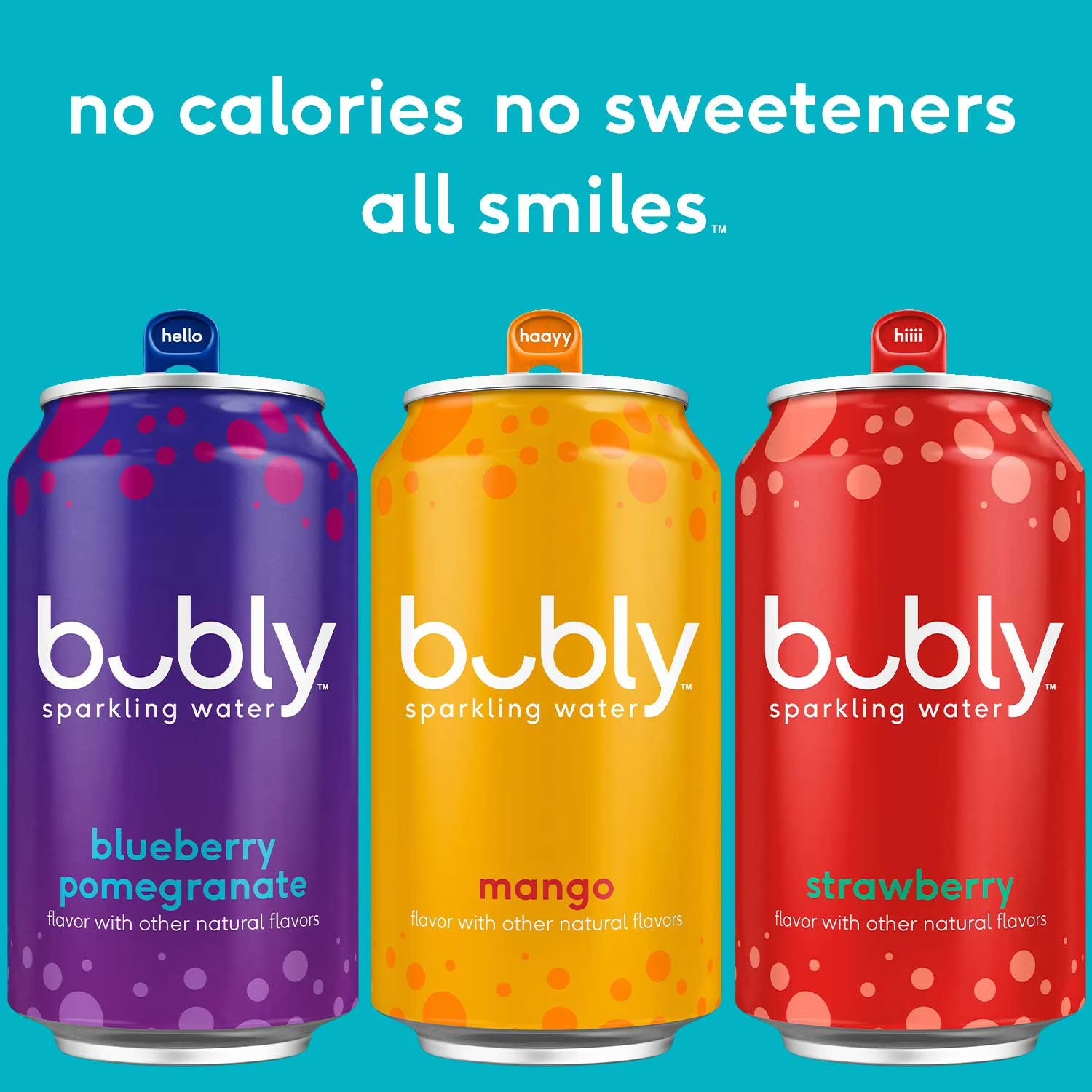 Experience the crisp and refreshing taste of bubly sparkling water, available in eight delightful natural flavors. Perfect for any occasion, bubly combines sparkling water with great-tasting fruit flavors to bring you a burst of joy in every sip. With no calories and no sweeteners, it's all smiles with bubly.