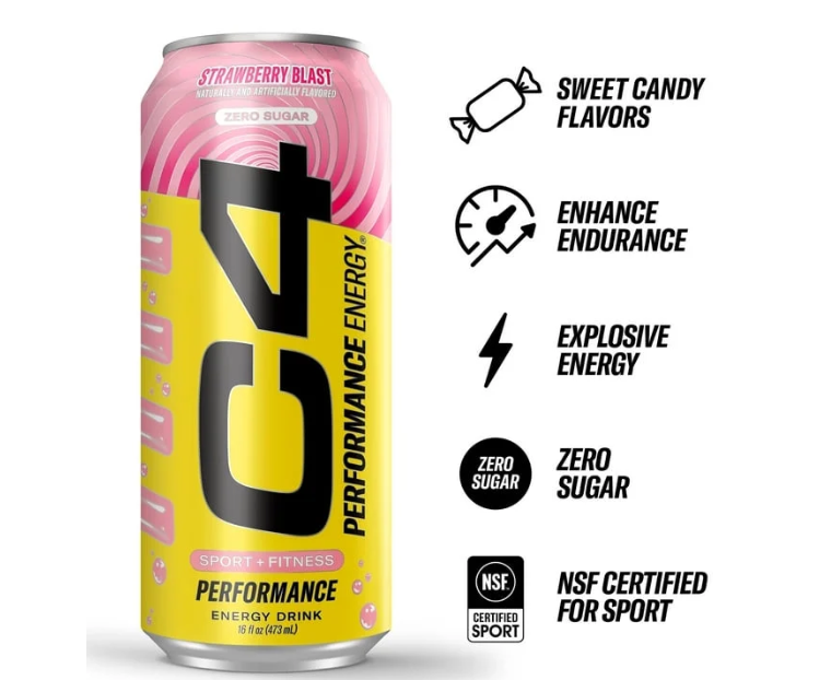THE BEST OF BOTH WORLDS – C4 PERFORMANCE ENERGY® MEETS SWEET CANDY-INSPIRED FLAVORS. Unlock your best performance, power, and speed with C4 Performance Energy®. Every can is packed with 200mg of caffeine and CarnoSyn® Beta Alanine for explosive energy you can feel. Made with clinically studied ingredients, ZERO grams of sugar or artificial colors, and carrying the NSF Certified for Sport® label, C4 Performance Energy® is the athlete’s choice for elevating performance.