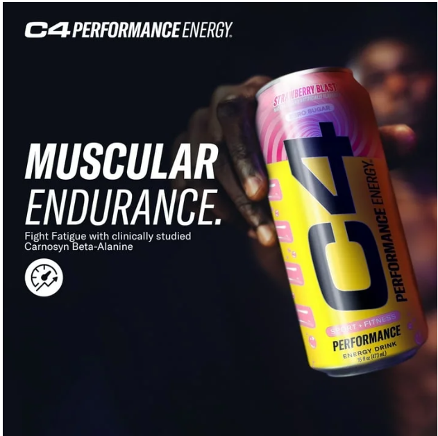 C4 Performance Energy Drink, Strawberry Blast, 16oz, Single Can