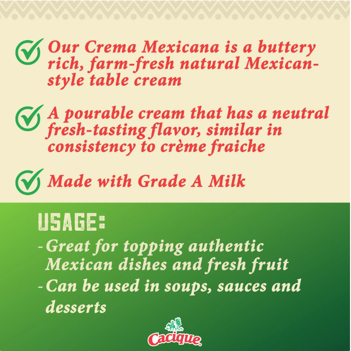 Cacique Crema Mexicana Table Cream, 15 oz Jar (Refrigerated)