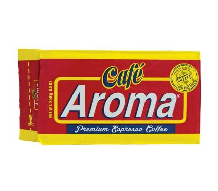 Cafe Aroma Premium Espresso Coffee 8.8 ounce ground espresso. 100% pure premium quality Cuban style espresso. Naturally caffeinated. Vacuum sealed brick for freshness. This intense, rich coffee has a full body with moderate acidity. Bursting with fresh flavor. This family brand was started in 1961 by a Cuban-American immigrant looking to recreate the distinct taste of Cuban espresso. Born in Cuba, perfected in the United States! Still family owned and operated using select coffee beans and state of the art roasting to deliver the freshest tasting, best coffee available.