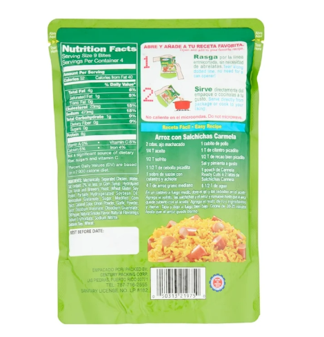 Trusted Carmela Quality – Produced by Carmela Foods in Puerto Rico, a brand with over 60% market share in local canned and pouched meats, known for consistency and taste