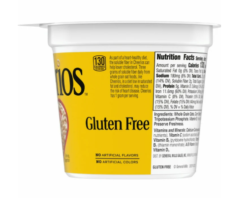 Take the delicious taste of Cheerios with you anywhere! Cheerios cereal in an individual cup offers a convenient way for you to enjoy wholesome cereal on the go. Simply pour milk in the cup, grab a spoon, and enjoy these tasty little Os. This toasted cereal is gluten free and made with whole grain oats. It contains no artificial flavors or colors and is a good source of vitamin D. Makes a delicious and wholesome part of a morning meal the whole family will love. Every serving provides 32g of whole grain (at least 48g recommended daily). Beyond a quick breakfast food for adults, this whole grain cereal makes a fun and easy kids snack by the handful. These cups are the perfect addition to mealtime, snack time, or anytime in between; they make a great pre-portioned snack for the backpack, bus, or car. Contains one single serve plastic cup of crunchy Cheerios Single Serve Cereal Cup, 1.3 oz; perfect for instant snacking, or a part of breakfast and meals.