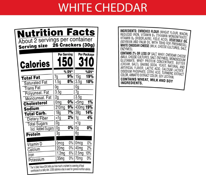 - Light and crispy bite-sized snack cheese crackers made with the flavor of white cheddar cheese and a dusting of salt; Shelf-Stable