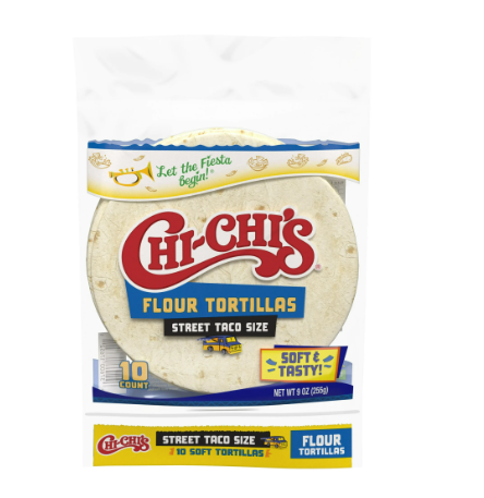 Experience homemade, authentic carne asada street tacos at home with CHI-CHI’S 4.5 Inch Flour Street Taco Size tortillas! Choose your favorite meat, carnitas, grilled chicken, or steak, then top with minced onion, cilantro, lime juice, and a sprinkle of your favorite CHI-CHI’S salsa! Our soft flour tortillas come in resealable packaging so you can enjoy them without worrying about waste. It's an ideal pantry staple that adds flavor and fun to any meal. Includes one 9 oz resealable plastic package (10 tortillas) of CHI-CHI'S Flour Tortillas Street Taco Size. All trademarks, logos, and images are owned by Hormel Foods Corporation, its subsidiaries, and affiliates. Copyright MegaMex Foods, LLC.