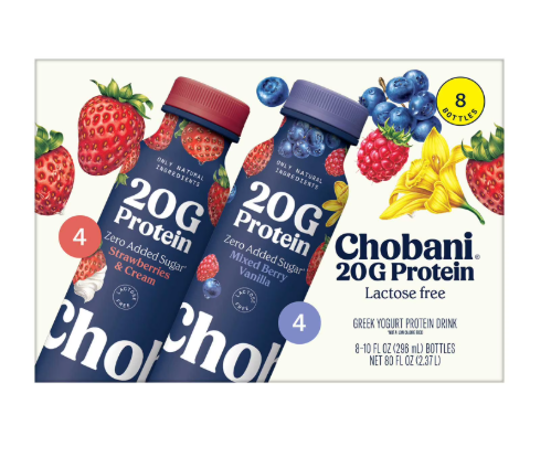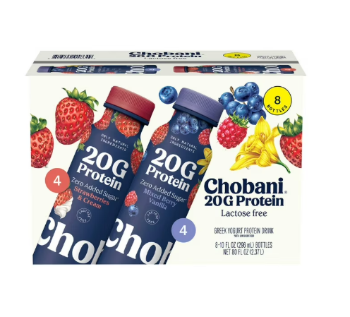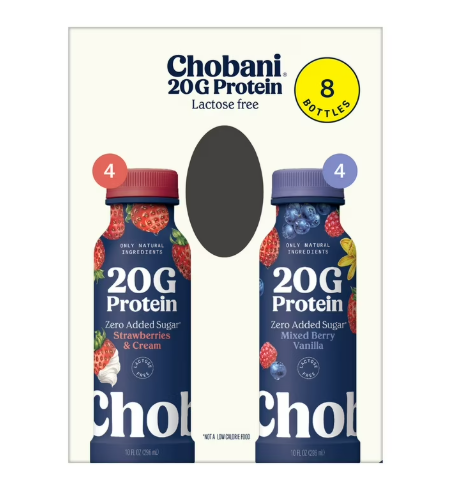Chobani 20G Protein Low Fat Greek Yogurt Drink Variety Pack, 10 fl. oz,. 8 ct.