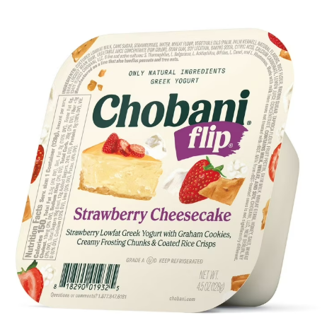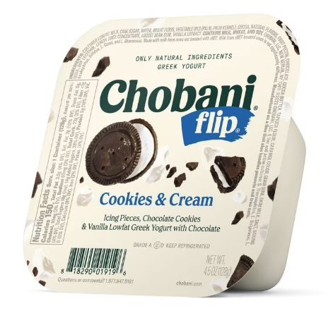 Chobani® Flip® is a good source of protein, making it a smart choice for breakfast, a midday snack, or a post-dinner treat. Individually portioned 5.3 oz. cups offer a convenient way to enjoy high-quality yogurt on the go.