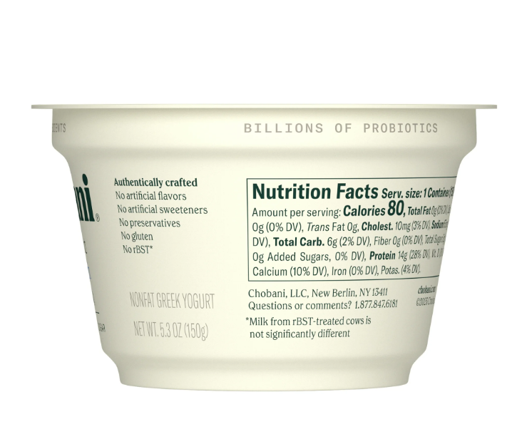 - 1-5.3 oz cup of Chobani Plain Non-Fat Greek Yogurt