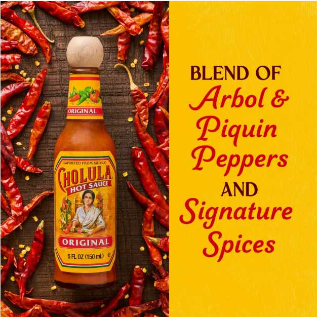 SIGNATURE INGREDIENTS: Cholula Original Hot Sauce is made with a thoughtful blend of arbol and piquin peppers plus Cholula spices, inspired by our generations-old family recipe.