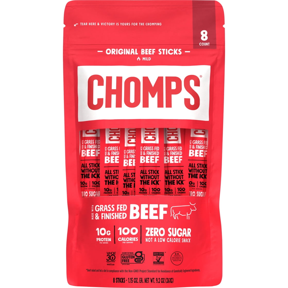 Chomps Grass-Fed and Finished Original Beef Jerky Meat Snack, 10g of Protein (8 Count)