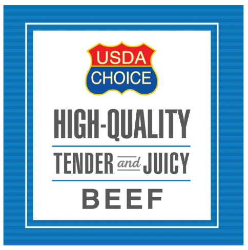 USDA Choice Angus Beef, known for marbling, tenderness, and flavor