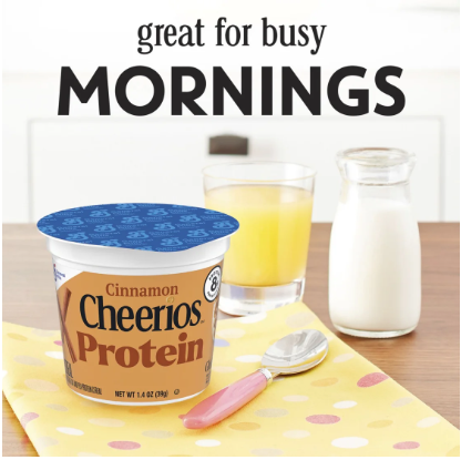 Take the delicious taste of Cinnamon Cheerios Protein with you anywhere! This individual cereal cup offers 8g protein per serving and is a convenient way to enjoy wholesome cereal on the go. Simply pour milk in the cup, grab a spoon, and enjoy these tasty little cinnamon flavored Os. This sweetened oat and pea protein cereal is gluten free and made with whole grain oats. Each cup contains 13g whole grain (48g recommended daily). It contains no artificial flavors or colors, and makes a delicious part of a morning meal the whole family will love. Beyond a quick breakfast food for adults, this whole grain cereal makes a fun and easy kids snack by the handful. These cups are the perfect addition to mealtime, snack time, or anytime in between; they make a great pre-portioned snack for the backpack, bus, or car. Contains one single serve plastic cup of crunchy Cinnamon Cheerios Protein Single Serve Cereal Cup, 1.4 oz; perfect for instant snacking, or a part of breakfast and meals.