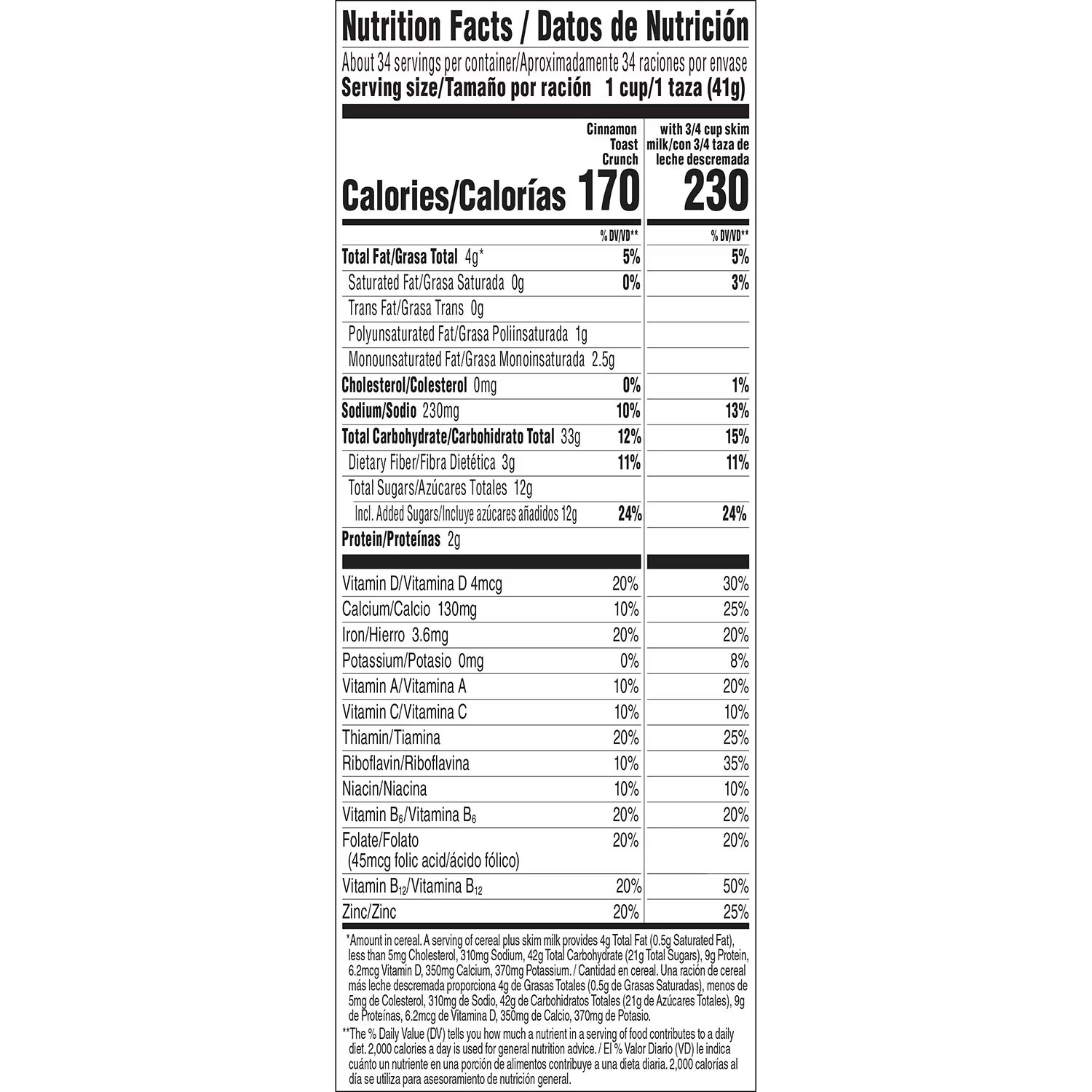 Cinnamon Toast Crunch Cereal is letting you crunch around the clock with a bigger box! Bring some joy to breakfast with these whole grain squares dusted with cinnamon and sugar. Cinnamon Toast Crunch is made for everyone–kids and those who are a kid at heart. Made with real cinnamon and with no high fructose corn syrup, you can feel good about feeding your family a delicious, nutritious breakfast before they start their day.
