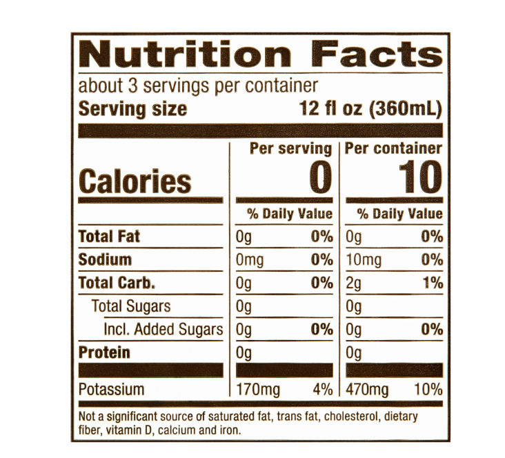 CARBONATED WATER, NATURAL FLAVOR, CITRIC ACID, POTASSIUM CITRATE, POTASSIUM BENZOATE (PRESERVATIVE), ASPARTAME, ACESULFAME POTASSIUM. PHENYLKETONURICS: CONTAINS PHENYLALANINE.